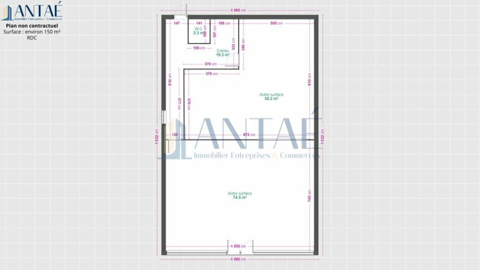 Le local comprend un espace de vente de 155 m² et un atelier ainsi qu'un étage de 80 m² composé de bureaux et d'une zone de réserve.
